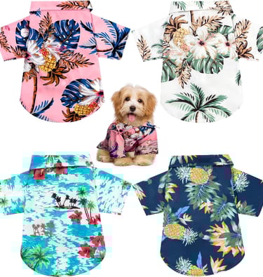 Featured on Amazon - 4 piece Pet Summer Hawaiian Floral Shirts
